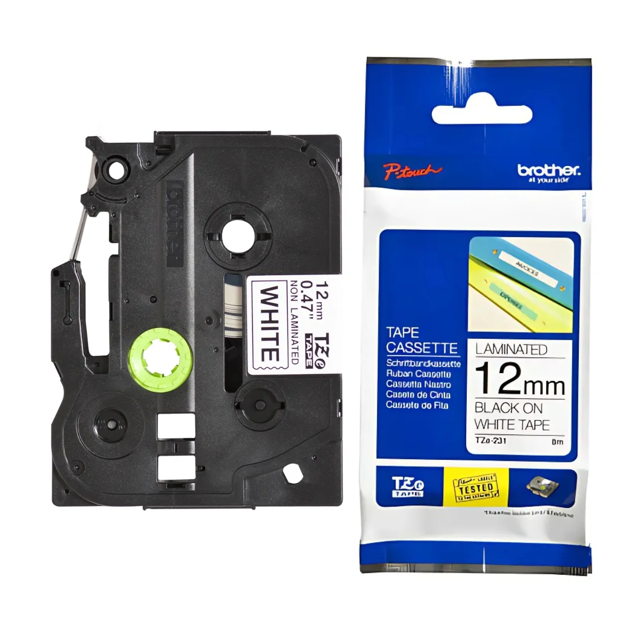 BROTHER เทปพิมพ์อักษรสีดำ พื้นขาว ขนาด 12 มม. TZE-R231 (เทปริบบิ้น)