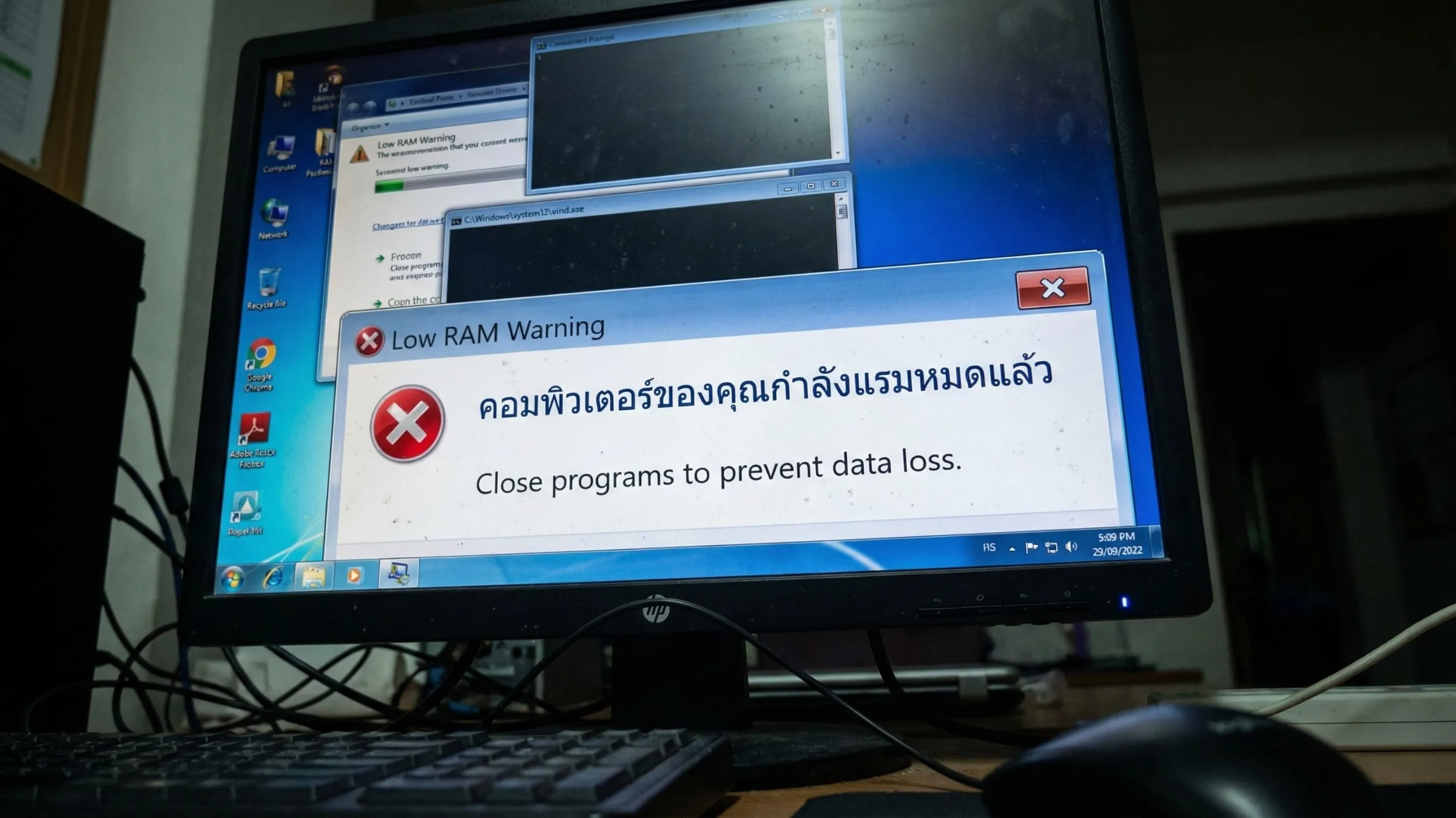 สัญญาณเตือนคอมพิวเตอร์กำลังใกล้หมดพื้นที่แรมแล้ว