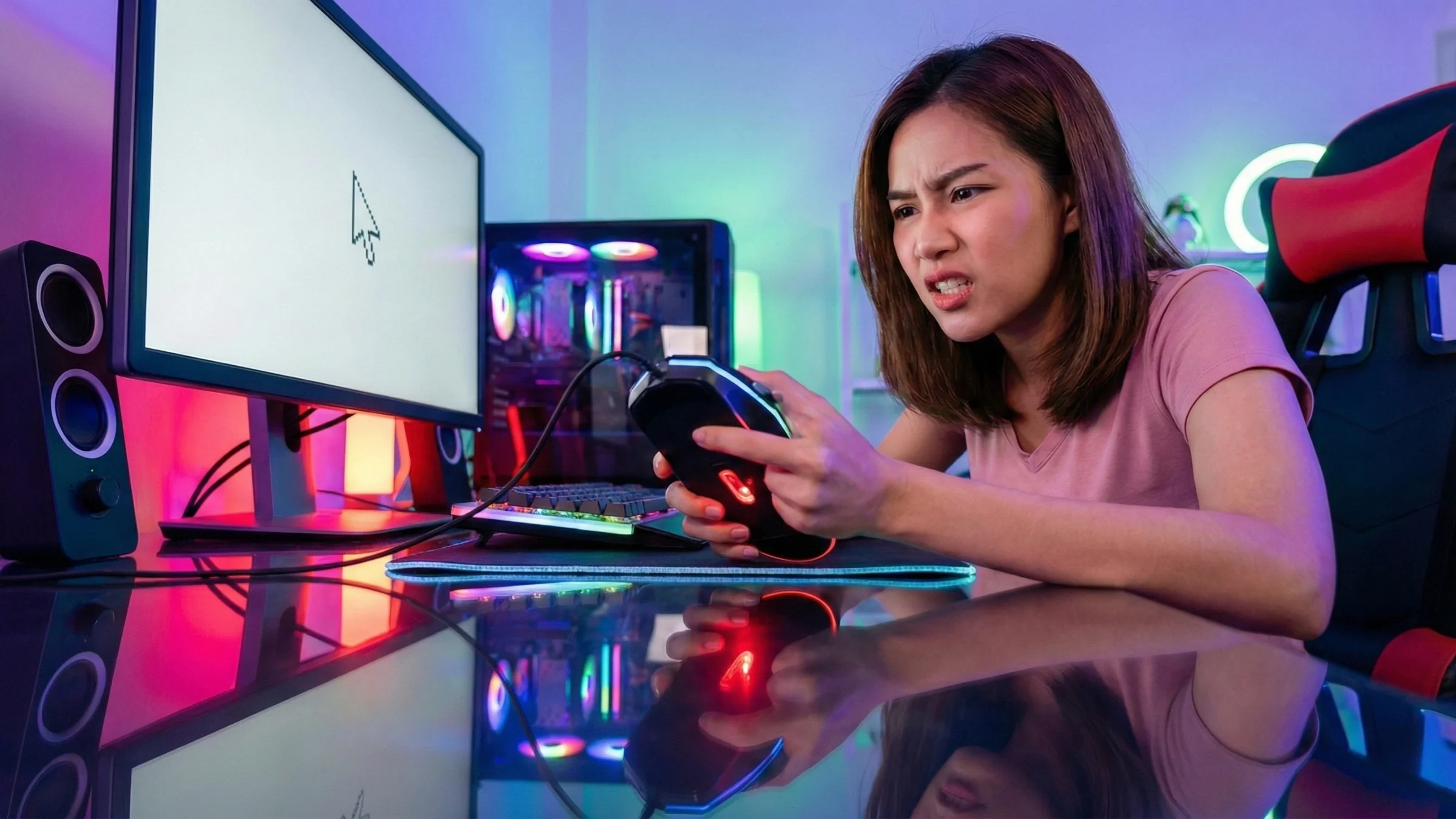 ⠀ ⠀ ⠀ในช่วงเวลากำลังลื่นไหลกับชั่วโมงการทำงาน หรือเเข่งขันเกมจังหวะ แพ้-ชนะ จู่ๆ เคอร์เซอร์เมาส์ที่เคยตอบสนองรวดเร็วกลับหยุดนิ่งสนิท สิ่งแรกที่มักจะทำ คือ การพลิกดูใต้เมาส์ และเห็นว่าแสงไฟเลเซอร์ ยังคงส่องสว่างสีแดง หรือสีฟ้าอยู่ ความสับสนจึงเกิดขึ้นว่า ถ้าไฟยังติด แสดงว่าไฟเข้า แล้วทำไมมันถึงไม่ขยับ จนอาจสร้างความหงุดหงิดใจ หรือรีบร้อนไปซื้อตัวใหม่มาเปลี่ยน ทั้งที่เมาส์อาจจะยังไม่ได้เสียหายทางกายภาพของเซ็นเซอร์ รวมไปถึงแผงวงจรภายใน แต่เกิดจากปัจจัยภายนอก และข้อผิดพลาดทางซอฟต์แวร์ เช่น พื้นผิวรองรับ พอร์ตการเชื่อมต่อที่จ่ายไฟไม่เสถียร และตั้งค่าการประหยัดพลังงานของระบบปฏิบัติการ Windows ที่ตัดการทำงานของอุปกรณ์ USB ไปดื้อๆ โดยวิธีการกู้คืนเมาส์ให้กลับมาไม่จำเป็นต้องทุบกระแทกเมาส์แรงๆ กับโต๊ะ ทางออกของปัญหานี้ง่ายดายมาก คำตอบรอให้พิสูจน์อยู่ในเรื่องนี้แล้ว